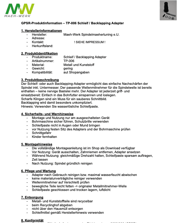 Schleif- / Backlapping-Adapter