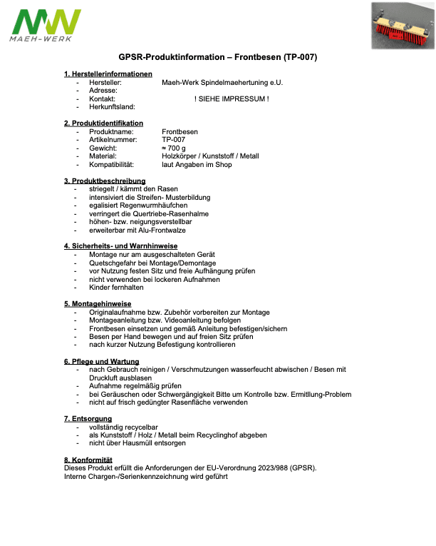 erweiterbar mit Alu-Frontwalze
