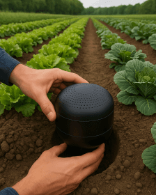 misst Bodenfeuchte, Temperatur, Wassertension und Leitfähigkeit direkt in der Wurzelzone